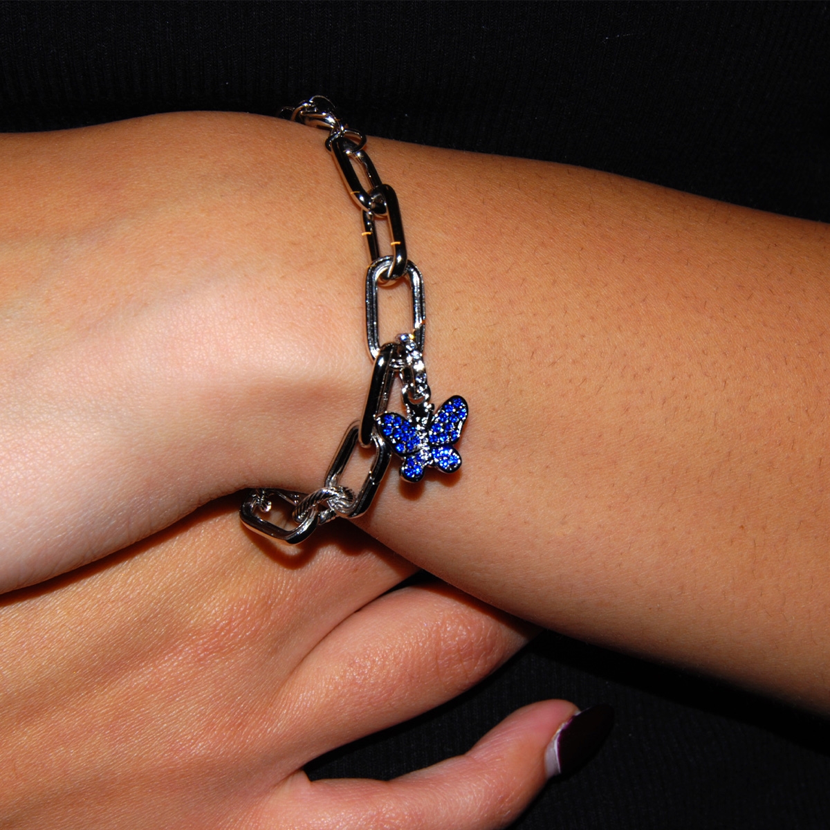 Vibrant and lovely, our adorable "Charmed Flutter" butterfly charm boasts stunning sapphire blue Swarovski crystal encrusted wings and a bail sparkling with clears. This little beauty is perfect when worn on our "I Truly Care" bracelet or adorned from our sleek "Finer Things Chain". Nickel and lead free jewellery.
