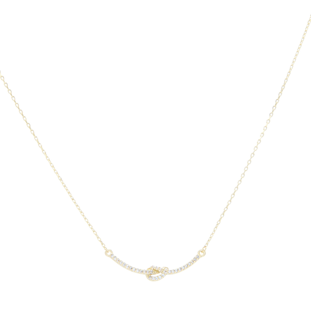 Dainty and sweet, our beautiful "Knotted Excellence" neckpiece flaunts a timeless knot design encrusted in shimmering AAA cubic zirconia suspended from a sleek 17" designer chain for the perfect elegant touch. Nickel and lead free jewellery.