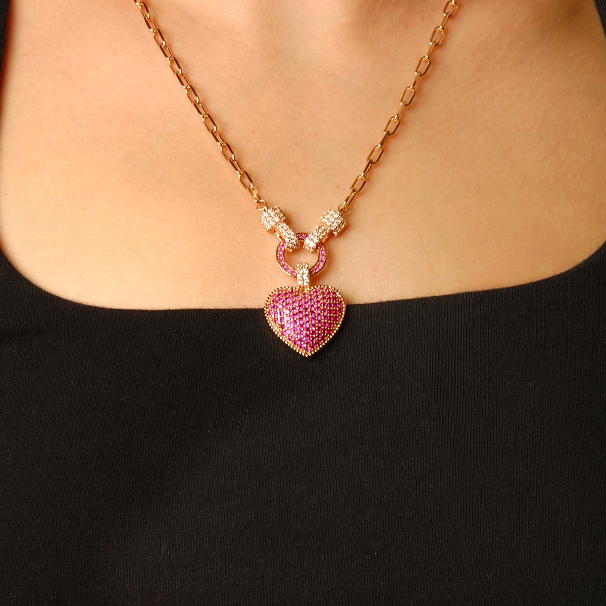 The epitome of boldly romantic, our "Loving Details" neckpiece flaunts an on-trend heart design, richly adorned with colorful AAA cubic zirconia on a chic 19" designer chain. Nickel and lead free jewellery.