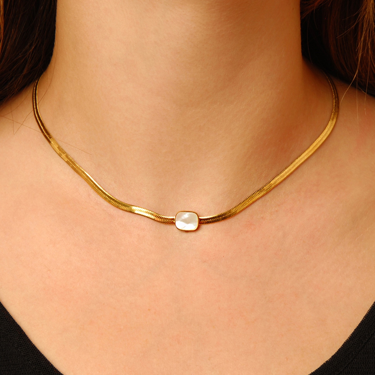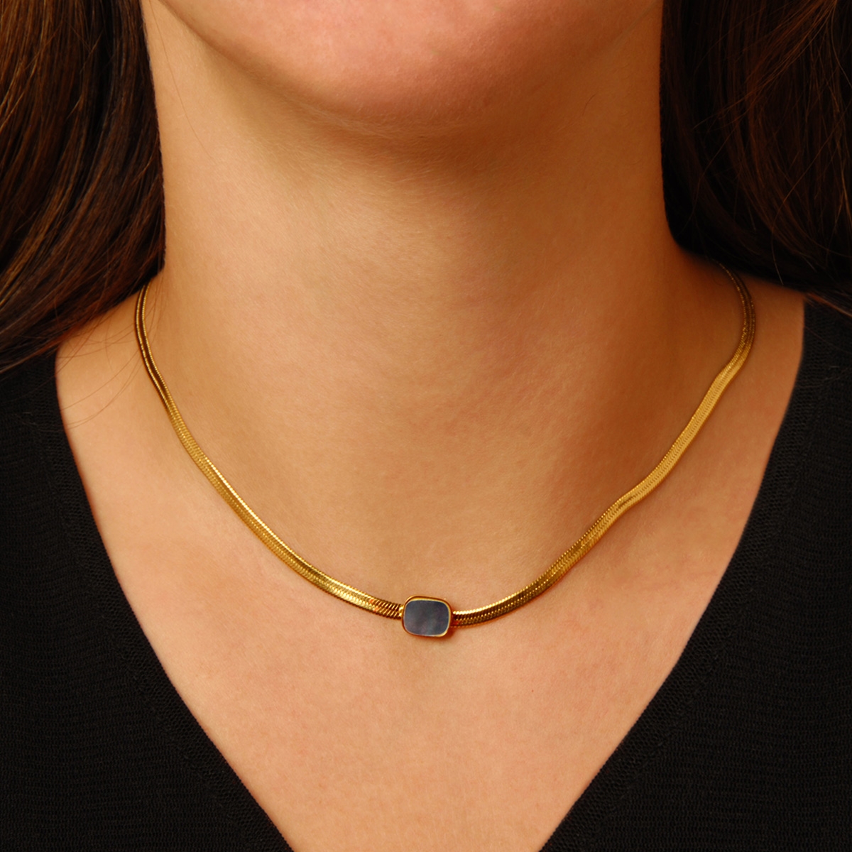 Showcasing smooth lines, feminine style and a stunning natural gemstone, our "Naturally On Trend" neckpiece is the perfectly chic design. 15" neckpiece with 2" extension. Nickel and lead free jewellery.