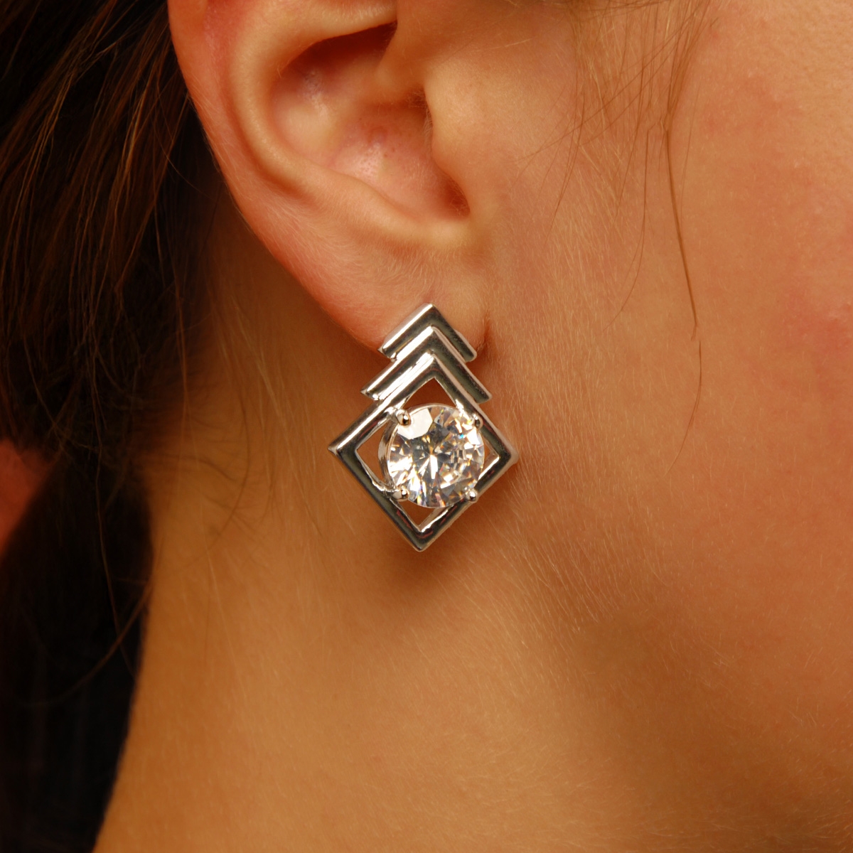 Eye-catchingly cool our "Strikingly Contemporary" earrings flaunt a chic geometric design centered with a brilliant AAA cubic zirconia to give you a fun and sparkling fashion essential. Sterling silver posts. Nickel and lead free jewellery.
