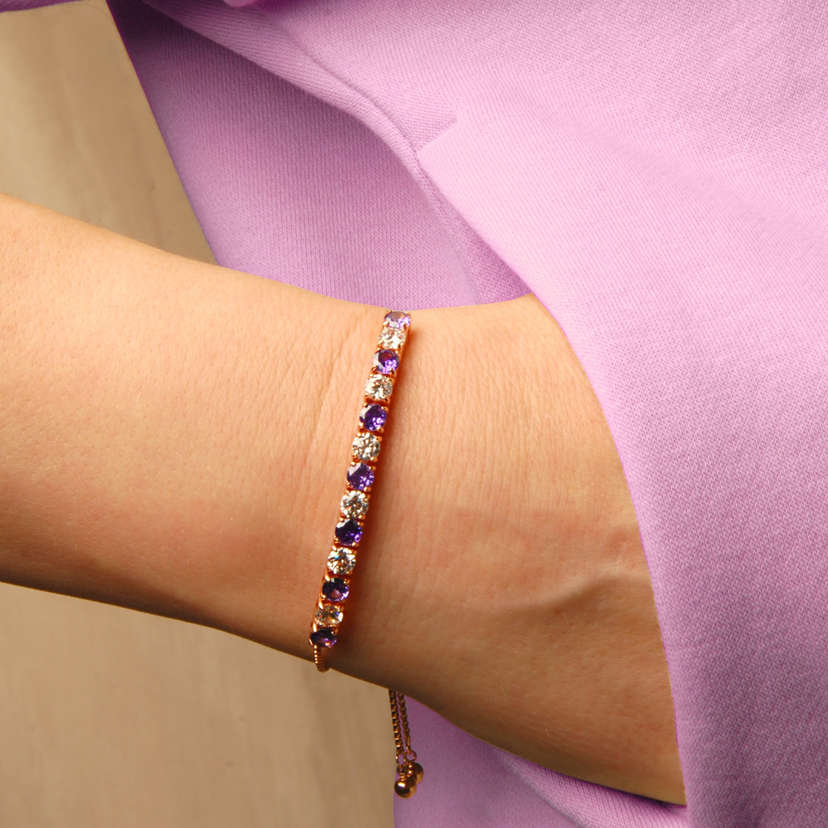 Our lovely "Whimsical & Fine" bracelet flaunts stunning alternating purple and clear AAA cubic zirconia to create a timeless design that can be worn on its own or layered up to create a gorgeous arm candy stack! Easy-to-wear drawstring closure. Nickel and lead free jewellery.